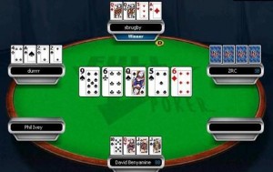 If you started with 3h-3d-4h-4d and the flop was 5d-6s-7c, then you have made a straight. The problem is, is that it is very likely that someone else has made a much higher straight then you and you are just about drawing dead from the flop on – you have what is called “the sucker end of a straight”. The same situation would also apply if you hit a flush or had a flush draw. It is highly likely that someone else is going to have a higher flush leaving you 2nd best.